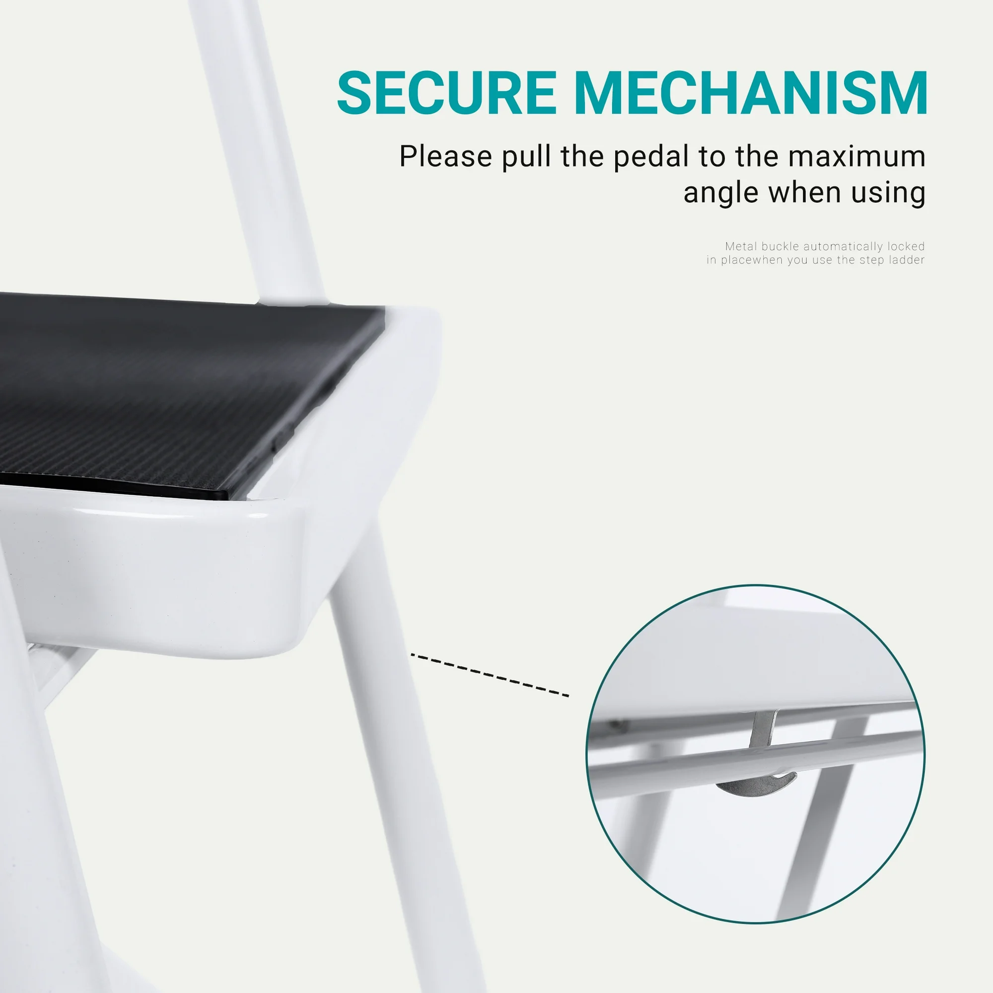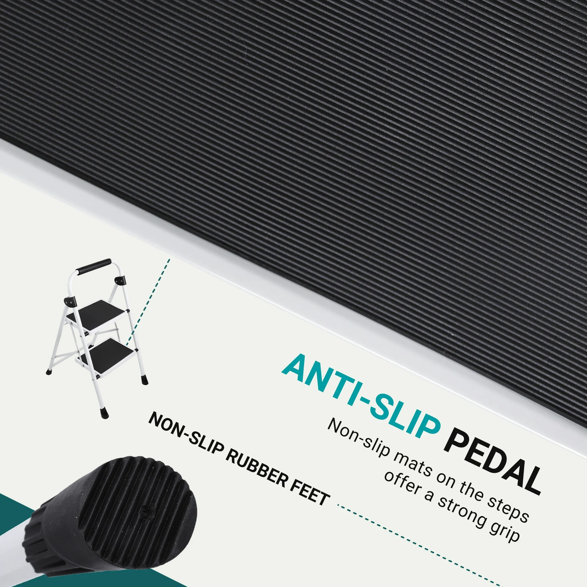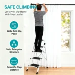 • 【ANTI-SLIP DESIGN】You can easily find our pedals thicker and wider, and the anti-slip line is deeper. This can increase your sense of security. Thickened rubber feet fully touch the ground to keep the ladder stable when in use, and can effectively prevent scratches on the floor. The top handrail can give you extra support when climbing.
